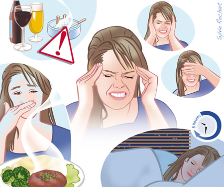Voedsel- of slaapgebrek, bepaalde levensmiddelen zoals chocolade, alcohol, kaas of voedingsmiddelen die natriumglutamaat bevatten (industriële smaakversterkers), blootstelling aan scherp licht of hard geluid, weersveranderingen, stress of angst zijn allemaal factoren die een aanval kunnen uitlokken.